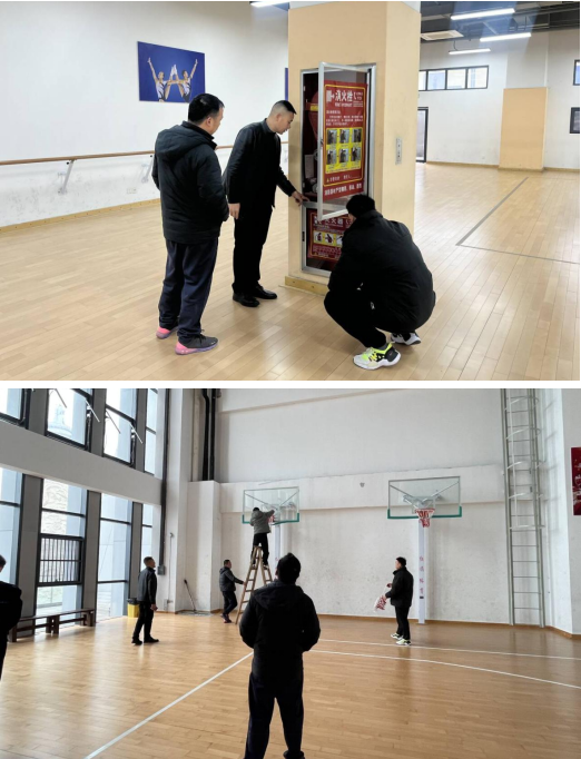 检查组一行前往室内体育馆和室外运动场地,对所有体育设施和场地进行全面检查,对重点器材进行逐一检查。在检查过程中,胡伟询问了寒假期间健身器械检修保养情况,他强调,要时刻绷紧安全思想之弦,严格落实安全责任制,紧盯体育课堂安全、训练竞赛安全、场馆设施安全等重点领域,定期排查风险隐患,切实筑牢校园安全屏障。